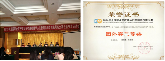 本次会议为2014年全国职业院校商品归类网络技能大赛举行了颁奖仪式,我系12级的23名参赛学生在指导老师陈贤慧老师和陈颖君老师的带领下荣获团体三等奖的好成绩。