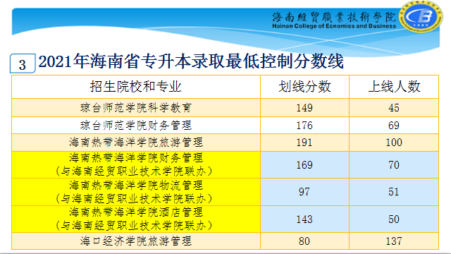 2021年海南省专升本录取最低控制分数线