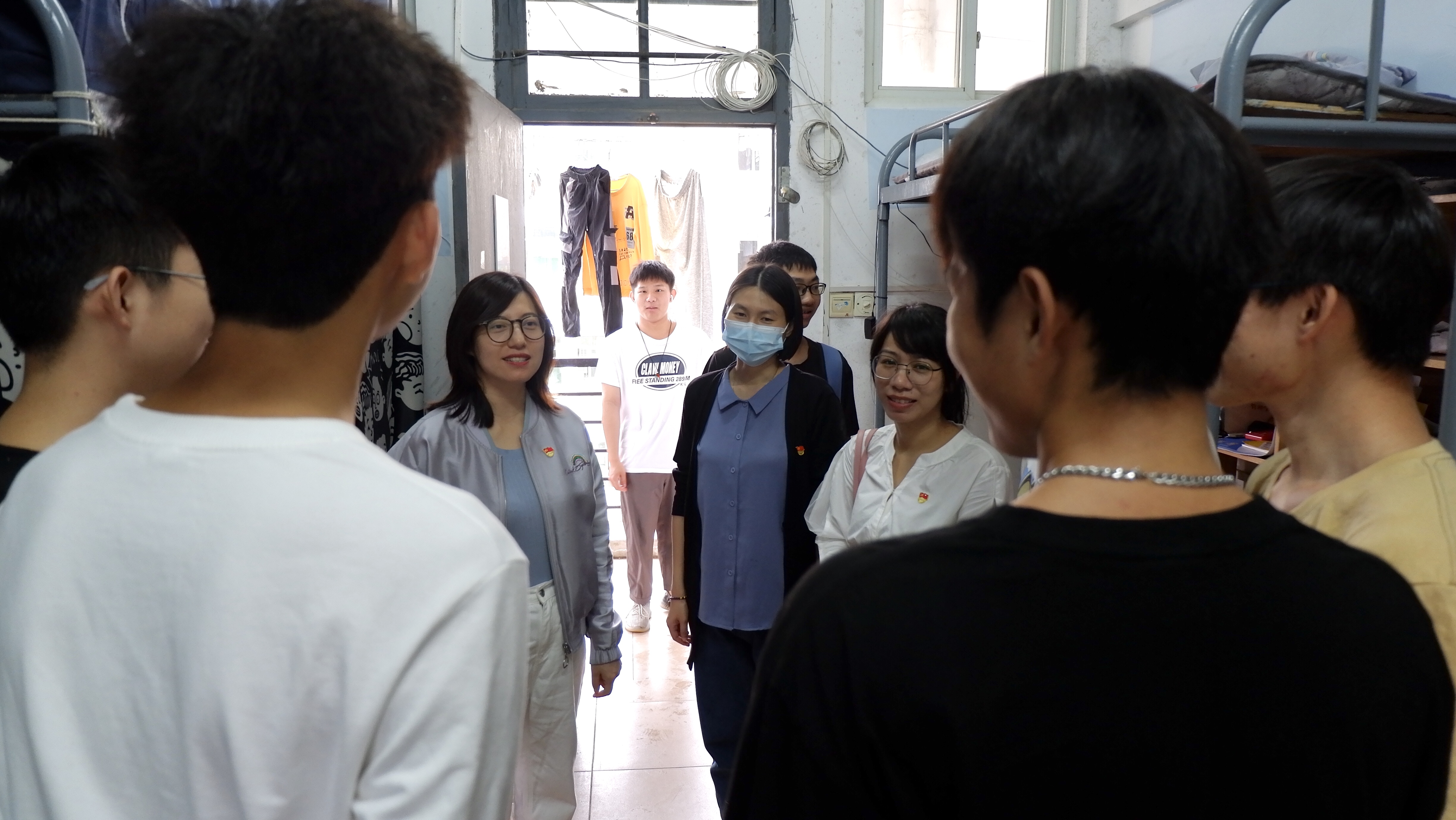 教师党员与学生亲切交流,叮嘱学生要养成良好的卫生习惯,加强安全防范意识,营造安全、健康、舒适的生活环境。并督促不合格的宿舍进行现场整改,促进学生宿舍管理更加规范化。针对目前国内疫情多点爆发的严峻形势,教师党员们也向同学们宣传了有关疫情防控的相关内容,号召同学们积极了解疫情防控知识,加强自我保护。