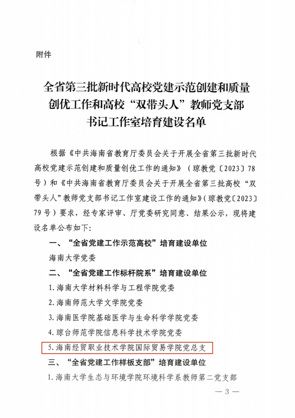 近日,省教育厅党委公布第三批新时代高校党建