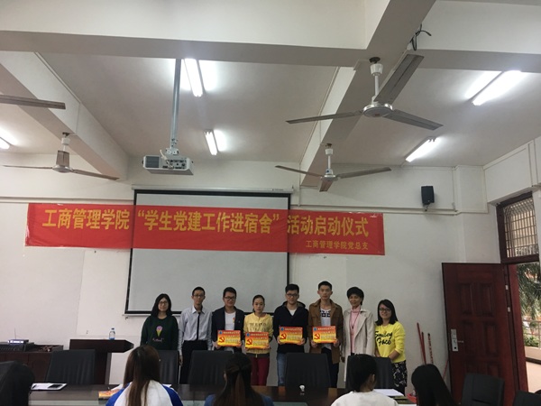 本院11月29日讯(工商管理学院通讯员 谢小康报道)2016年11月29日下午14时许,我院党总支在第一教学楼205召开“学生bat365官网登录在线主页进宿舍”活动启动仪式。活动由学生党支部书记印华主持,党总支书记蒙永坚、党总支副书记麦锐、学工办负责人赵爽以及全体学生党员、入党积极分子代表近50人出席了本次活动。