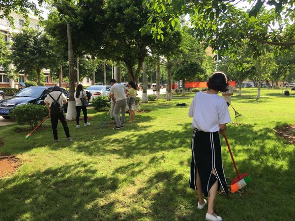支部开展“心怀感恩,共创温馨”清扫校园绿地主题活动,