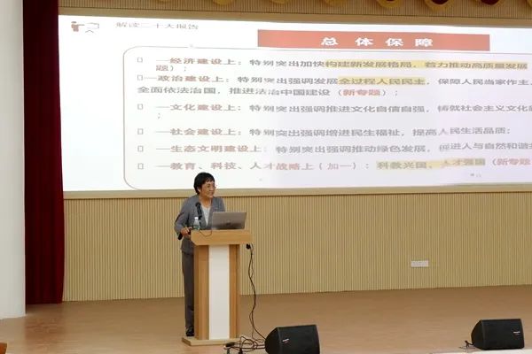 马桂琴运用丰富的数据和案例,对党的二十大精神进行了全面宣讲和深入解读,深刻阐释党的二十大提出的一系列新观点、新论断、新思想进行了;系统分析党的二十大报告中对教育、科技、人才工作的一体阐述、一体部署。