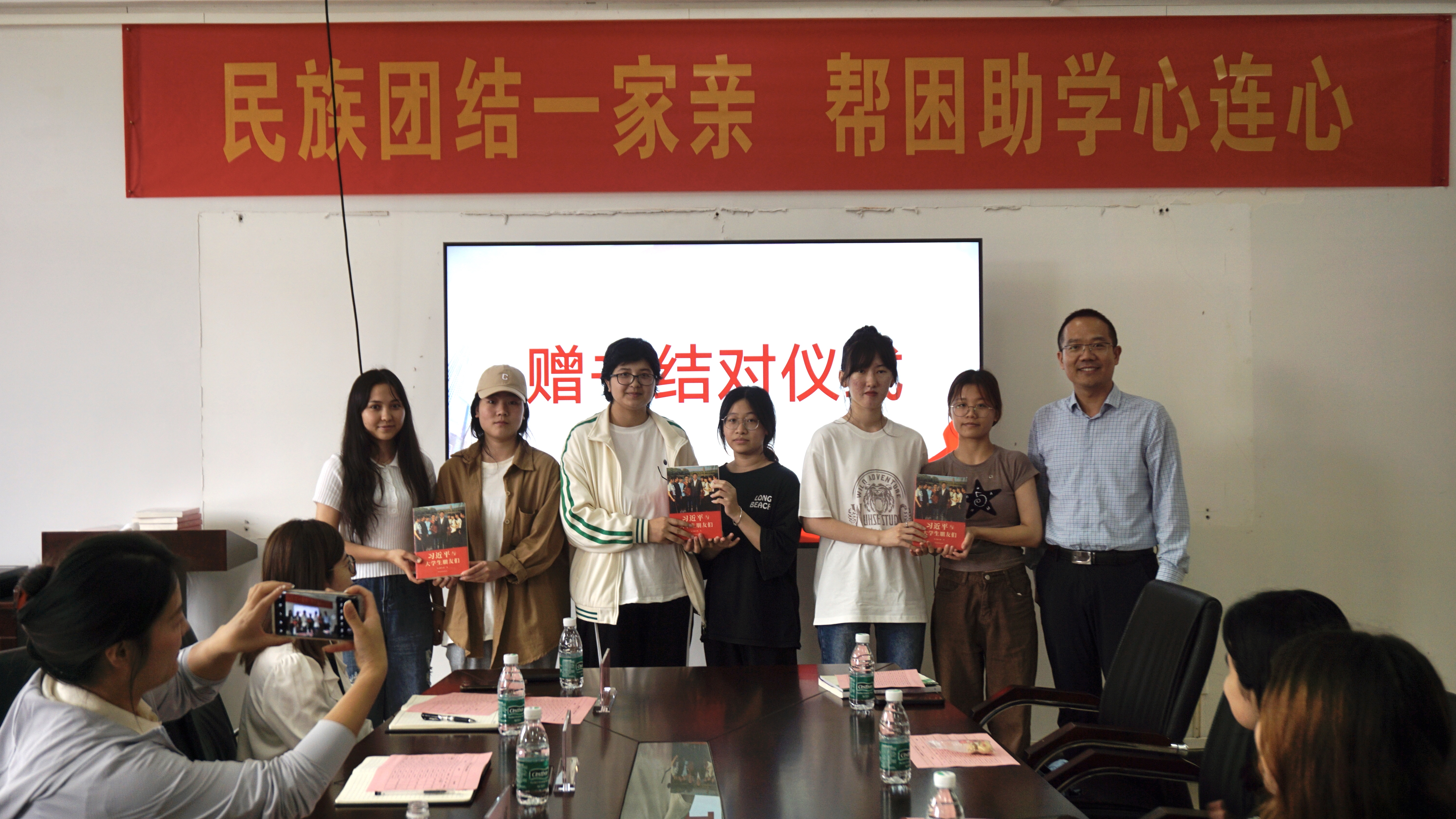 随后,现场举行了隆重而简短的赠书仪式,老师们鼓励同学们要珍惜时光、好好读书,不断提升自己的思想修养。最后,党总支书记张修志老师对此次座谈会进行总结,并对少数民族同学表达祝福与鼓励,支持少数民族学生发挥特长优势,希望同学们在结对帮扶活动中互帮互助,共同成长,团结合作、扬帆起航!