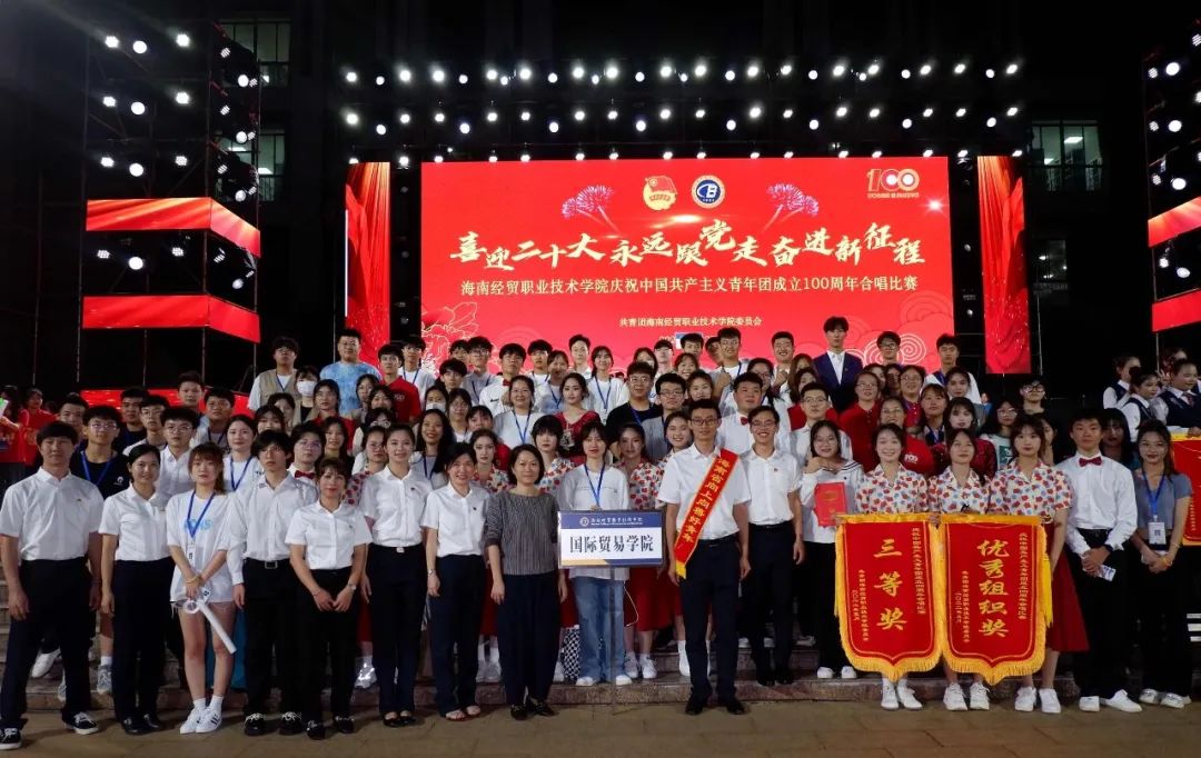 2022年5月20日晚7:30时,海南经贸职业技术学院2021年度"五四"表彰大会暨庆祝中国共产主义青年团成立100周年合唱比赛在经贸广场拉开帷幕,best365官方网站登录入口党总支书记黄邦姬,学工办主任赵志凌等全体学工及大一年级全体学生共同在现场观看比赛并为学院代表队加油。