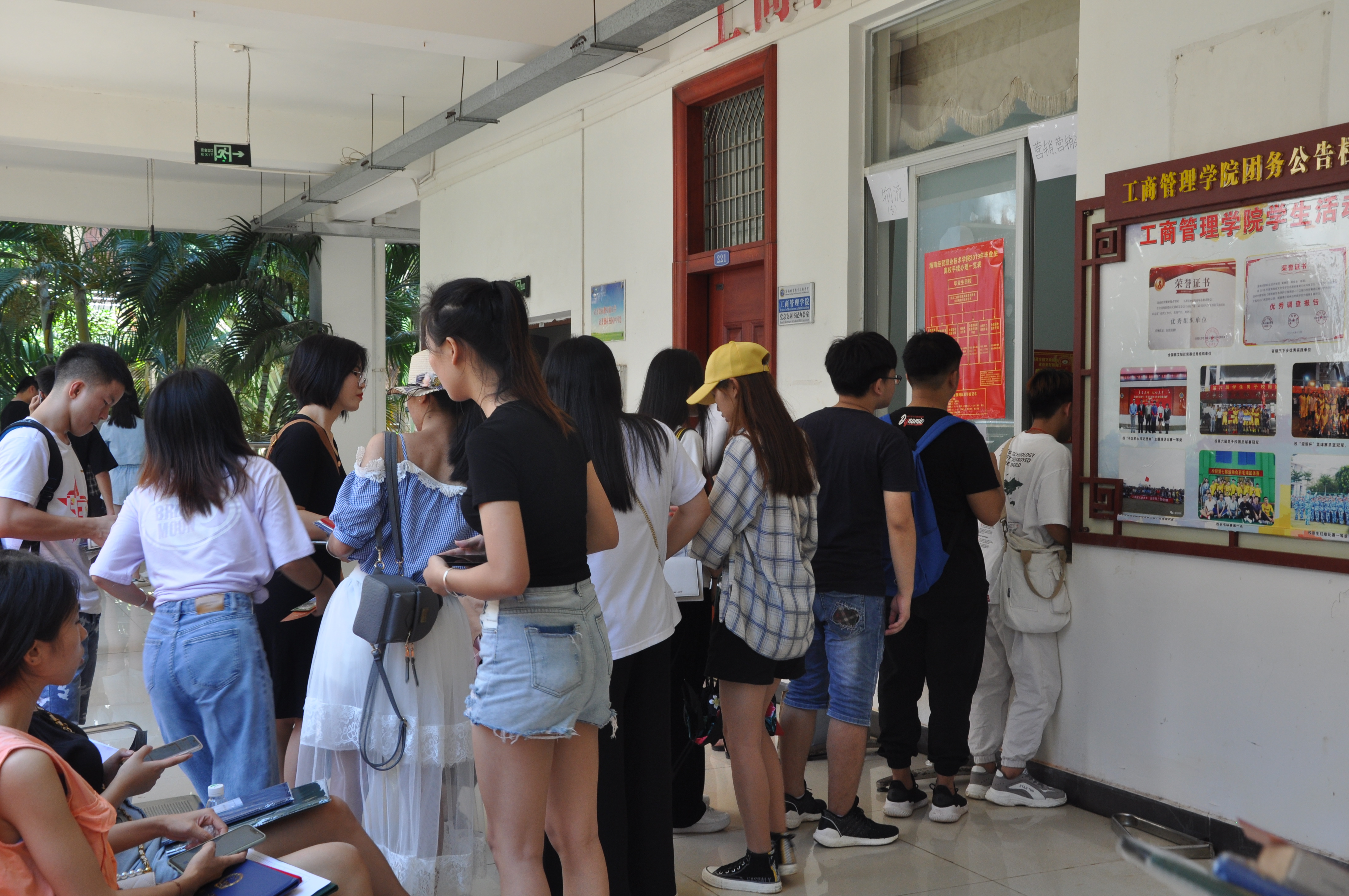 你总说毕业遥遥无期,转眼就各奔东西。2019年6月4日19届毕业生回到母校海经贸办理毕业事项,我院毕业生共有661人,整个工管学院里充满活跃的气氛,办理毕业事项的窗口排满了为未来做准备的人,有人内心忐忑,有人期待满满,有人依依不舍。在还没有准备好的情况下,美好的大学生活就悄然接近尾声。