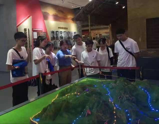 五指山革命根据地,是海南岛的第一面五星红旗的升起的地方。纪念碑高23米,象征着海南23年(1927-1950)红旗不倒的光辉历史。在陈列馆里,红色书刊、当年红军使用过的长枪和手榴弹、大量历史图片等“红色藏品”摆满展馆。学工办主任赵志凌老师通过讲述海南岛首面五星红旗背后的故事,激励大家传承和发扬“23年红旗不倒的革命精神”,懂得今天的幸福生活来之不易。全体人员通过现场观看实物、聆听讲解、重温入团誓词等,接受了一次深刻的党性教育。