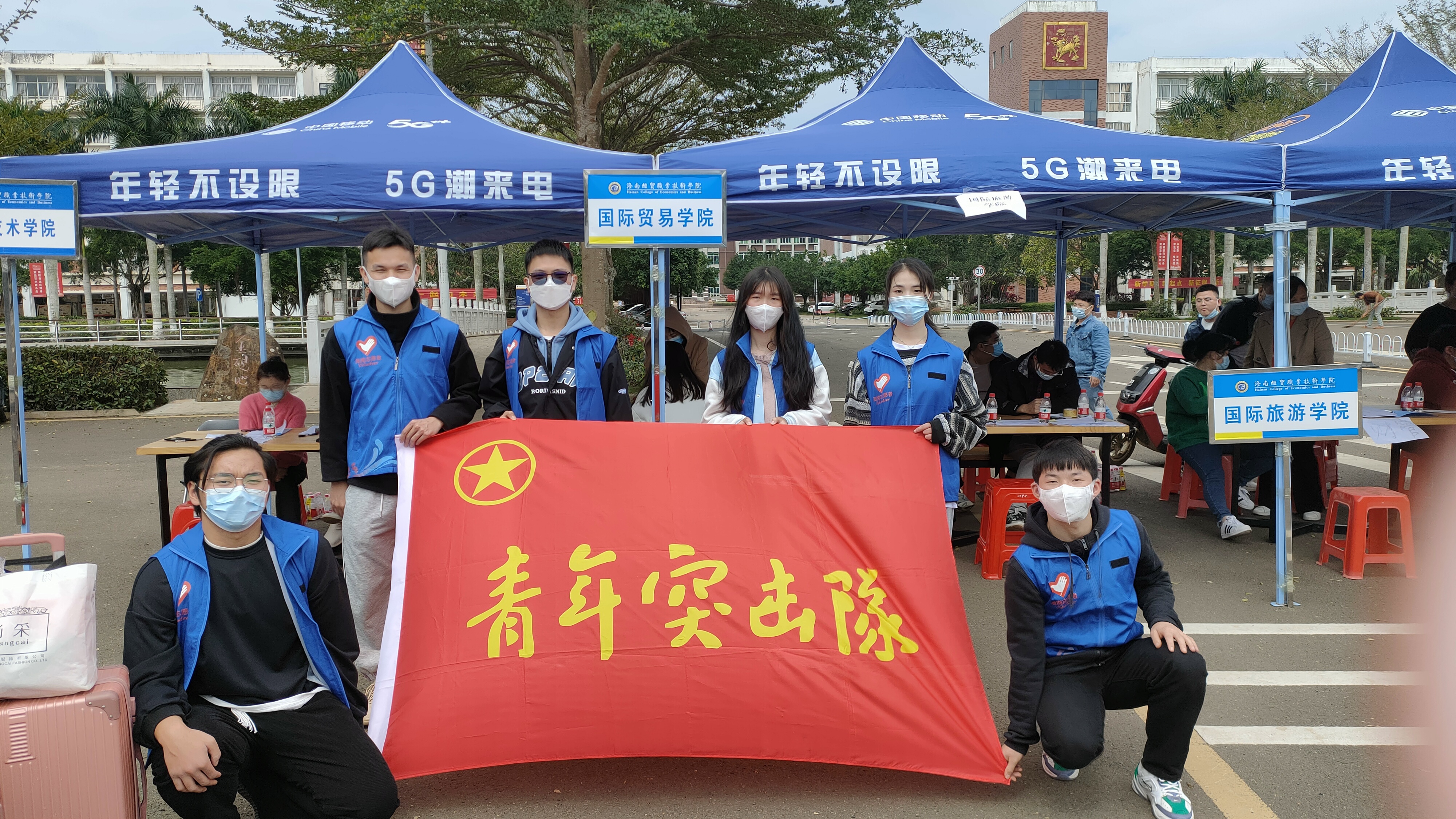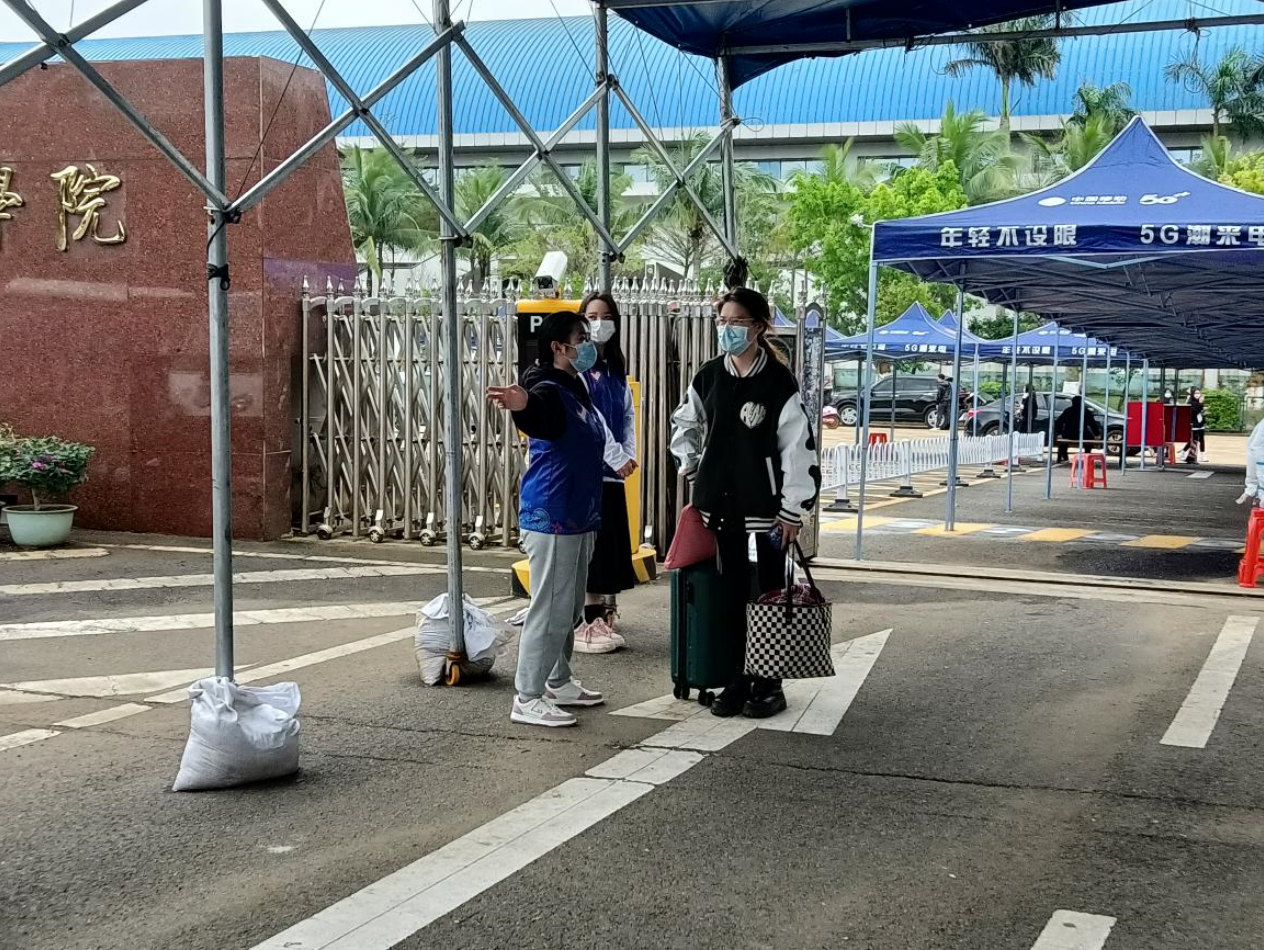 2月26日至27日,海南经贸职业技术学院2022年春季学期如约而至。为配合学校扎实做好校园疫情常态化防控及安全管理工作,best365官方网站登录入口学生党支部、团总支积极组织青年突击队志愿者开展疫情防控、人员引导、行李搬运等志愿服务,助力各年级学生安全、平稳、顺利返校。