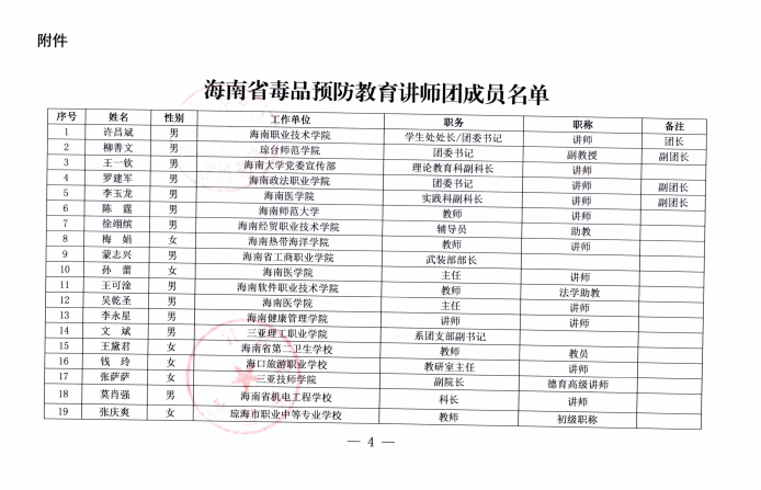 我院徐翊缤老师入选海南省毒品预防教育讲师团成员