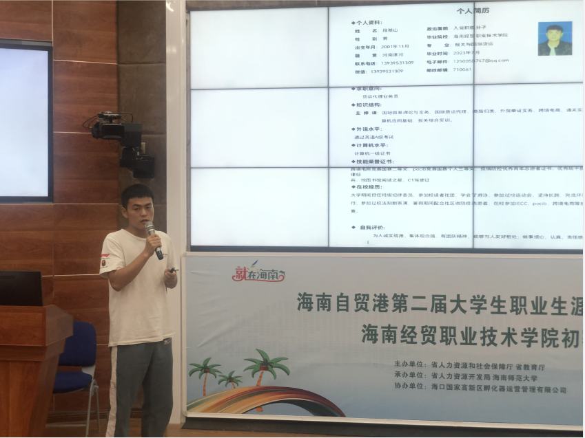 2022年5月30日,海南自贸港第二届大学生职业生涯规划大赛校级选拔赛在2-215举行,经过激烈的角逐比拼,我院20物流1班王媛媛《“港”好遇见你》、21关务1班应焱芸《关务专员的自贸港航路》荣获一等奖;21电商3班项乐怡《规划人生,点亮心中梦》、20报关2班段基山《关务职业生涯规划》、20连锁1班赖辉杨《连锁门店经营职业生涯规划》荣获二等奖;21物流1班陈殿博《仓储的未来之路》、21国经3班赵钰璠《跨境电商逐梦之旅》荣获三等奖;21物流2班李智杰《西牛》荣获优秀奖。