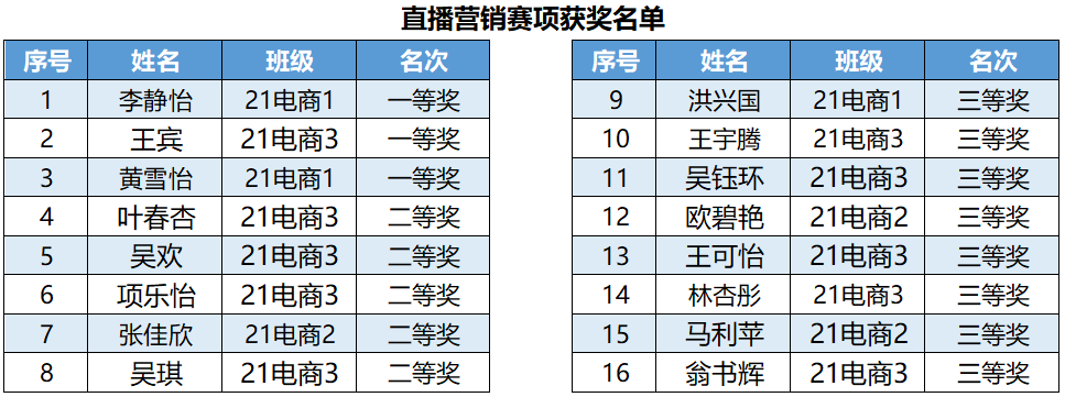 参赛选手操作熟练,以所学的专业技能知识、以饱满的精神状态完成了本次比赛。经过激烈角逐, 李静怡等16人获得直播营销赛项一/二/三等奖,梁琪等18人获得电商运营沙盘赛项一/二/三等奖,胡文丽等28人获得视觉营销赛项一/二/三等奖。至此,比赛完美落下帷幕。