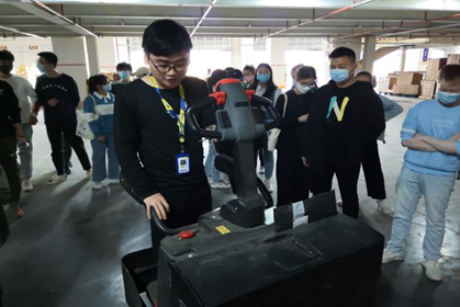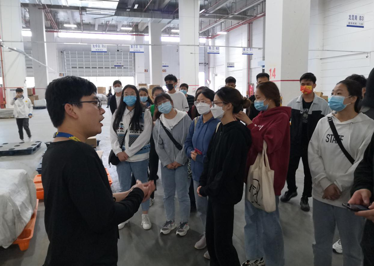 首先由吴智经理在货件装卸、分捡现场进行实操讲解,同学们认真听讲、记录教学内容。同学现场感受到了现代智慧仓储的智能分捡的先进。