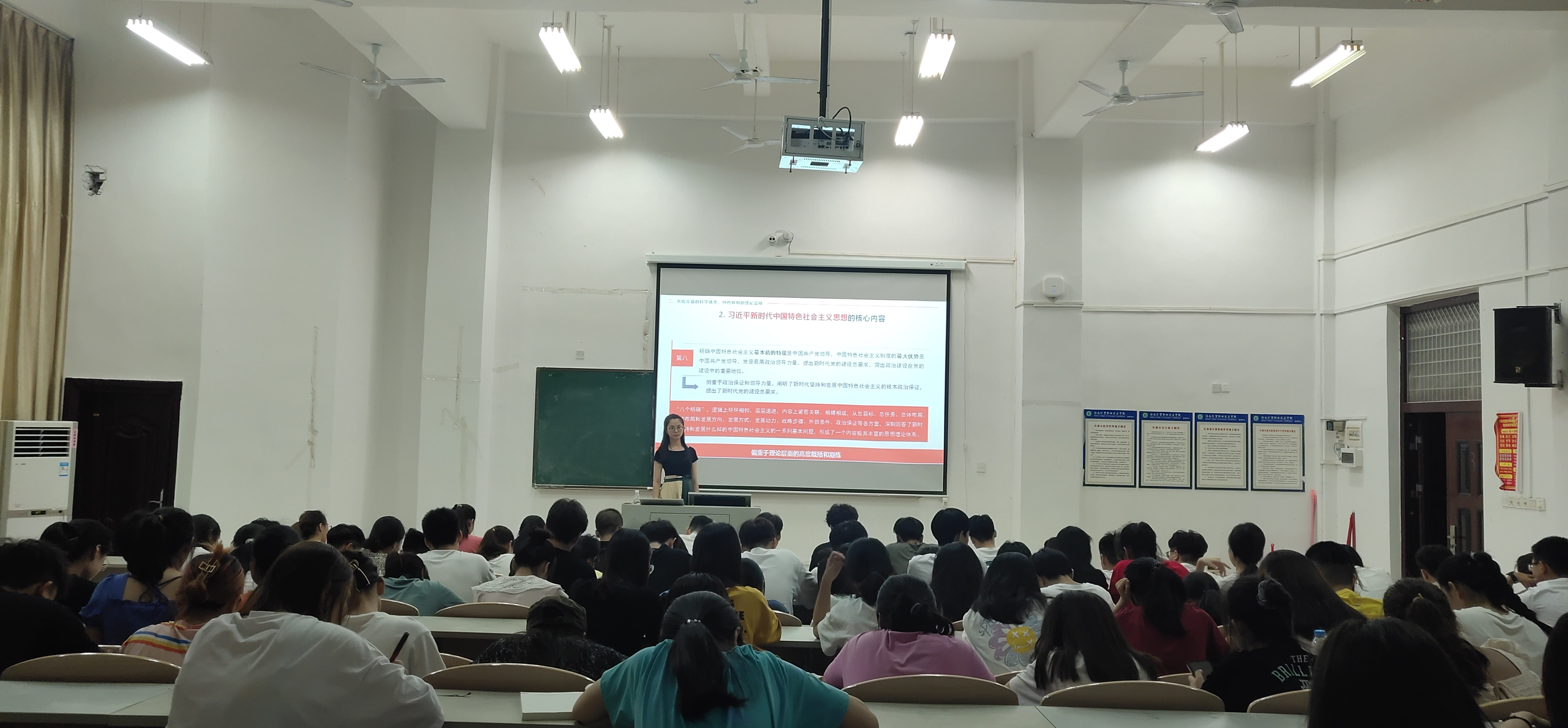 苏伊蕾老师围绕“习近平新时代中国特色社会主义思想体系及实践”的主题,从习近平新时代中国特色社会主义思想内涵以及思想核心内容两大方面同入党发展对象及入党积极分子进行学习交流。课上通过提问、讨论等形式加深了与同学们的互动,提升了学习效果。
