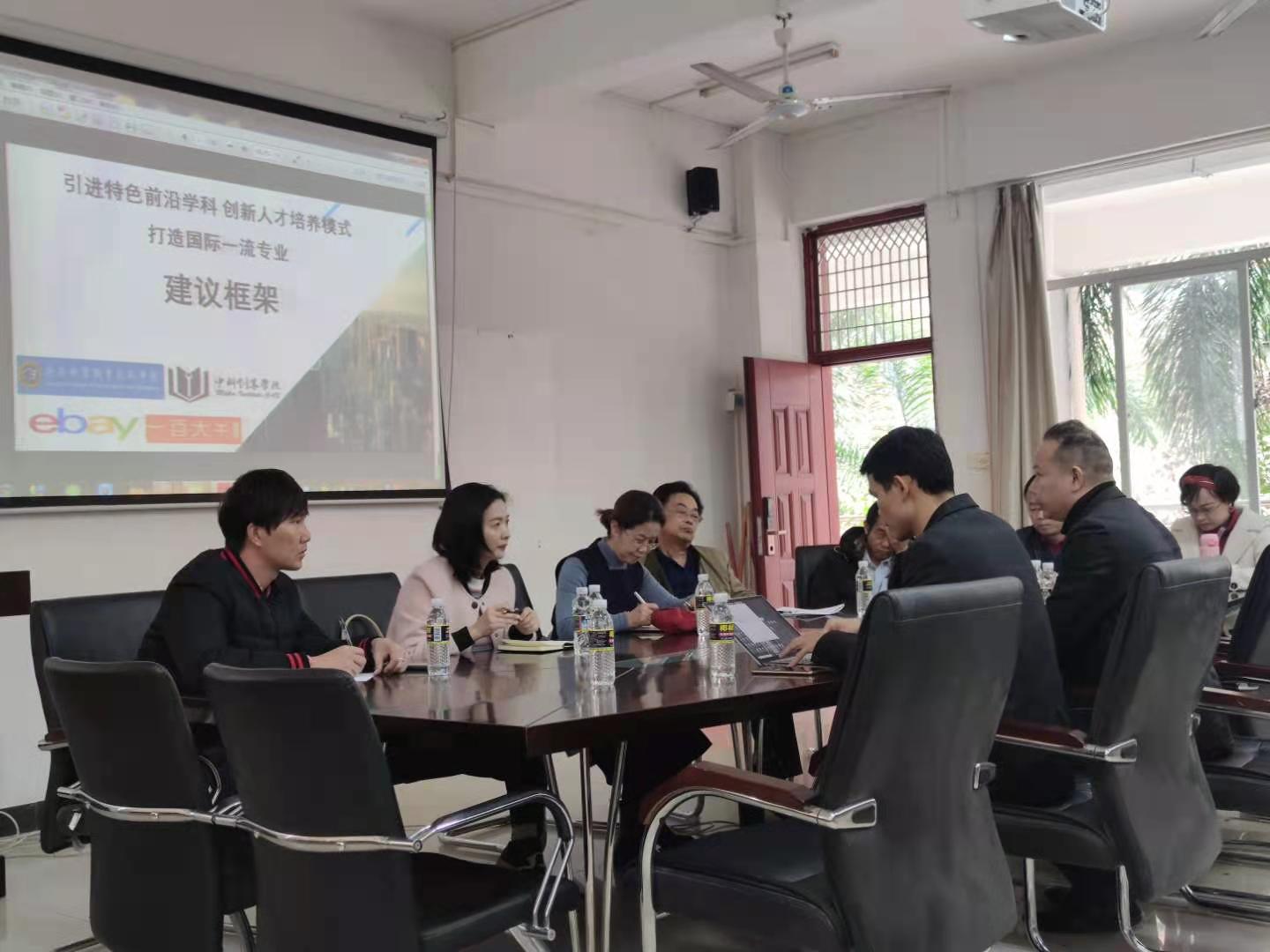 12月18日下午,中科创客学院深圳一百大EBAY团队一行来到工商管理学院就国际物流领域合作开展考察交流, 学院院长龙璇副院长王纪忠及相关部门负责人参加座谈会。