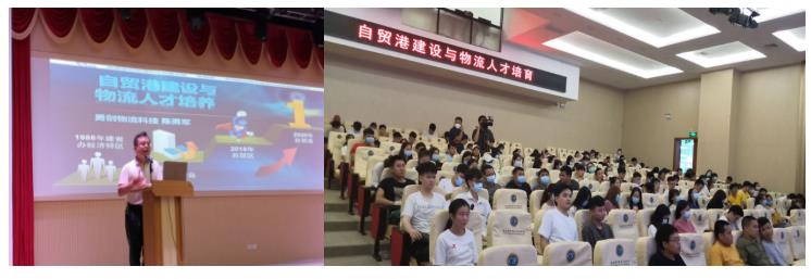 在“自贸港建设与物流人才培育”讲座中,陈博士从自贸港建设所需物流人才的特征切入,分析了智慧物流下物流专业人才成长阶梯及自我成长路径,陈博士以自己的亲身经历向同学们阐释了“职业认同感”给自己带来的“职业幸福感”,为同学们自我成长起到很好的引导和启发作用。