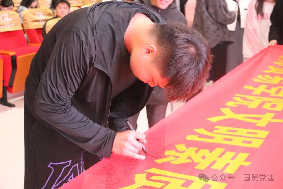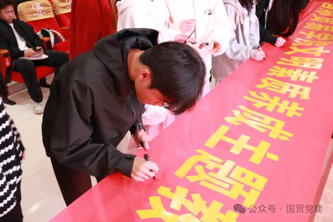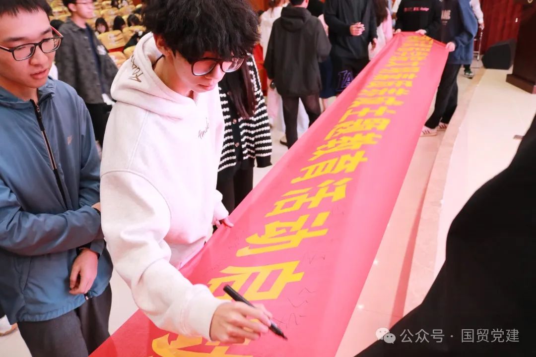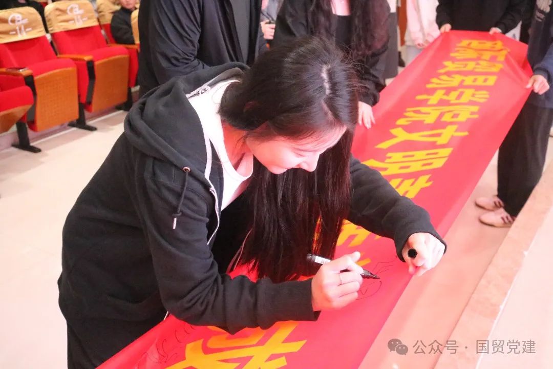 最后,各班级代表在横幅上郑重签名,以表达他们对提升自身文明素养、积极参与文明校园建设的坚定决心。