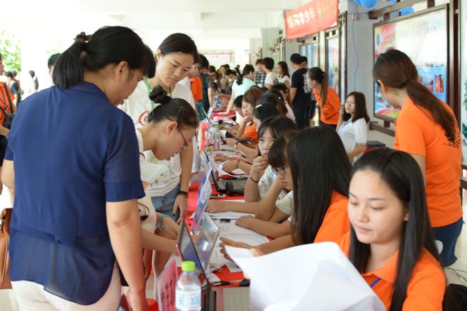 我院报到处,我院全体老师、学生干部和志愿者们早已整装待发,以高度的热情