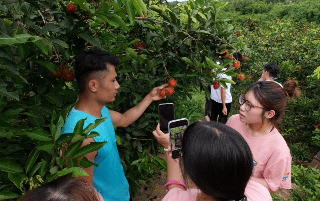 在保亭红毛丹种植基地,实践团成员的吆喝声透过镜头传遍全网。“这颗红毛丹要经历‘一年开花、四年养果’的匠心培育,酸甜爆浆的口感藏着果农四年的坚守!”镜头前,实践团成员钟兰的直播话术里,既有果实的生态特性,更有乡村振兴带头人陈波带领100多户脱贫户深耕产业的故事。