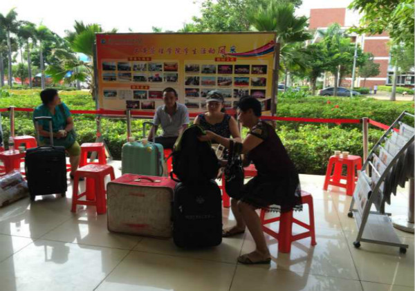 据了解,在本次迎新工作中我院团总支学生会中共成立了四个工作组,分别为后勤服务组、现场接待组、宣传工作组、咨询工作组,积极为新生和家长们答疑解难的同时提供力所能及的帮助。在迎新工作开始前,我院学工办副主任赵志凌老师组织全体团学干部进行了集中培训,我院高度重视此次迎新工作,制定了《2015级迎新工作方案》,为迎新工作做好充分准备,我院学工办主任麦锐和学工办副主任赵志凌充分调动学生干部及老生积极分子迎新积极性,从宣传入手,通过悬挂欢迎横幅和布置学生活动宣传展板等,为新生和家长入校创造了一个和谐温馨的气氛,在新生引导方面,工商管理学院组建了志愿者服务队伍,从接车、报到、缴费到入住宿舍提供了最真诚的服务,迎新的工作人员和志愿者们也是满怀热情和冲劲迎接着着每一位新生的到来,每一位工作人员各司其职,工作井然有序。远远就可以看到“工商管理学院新生接待点”标语在人群中显得格外醒目。“大家都很积极主动热情,他们不惧烈日骄阳,这些孩子真懂事”新生家长们对我院的迎新工作给予高度的肯定。