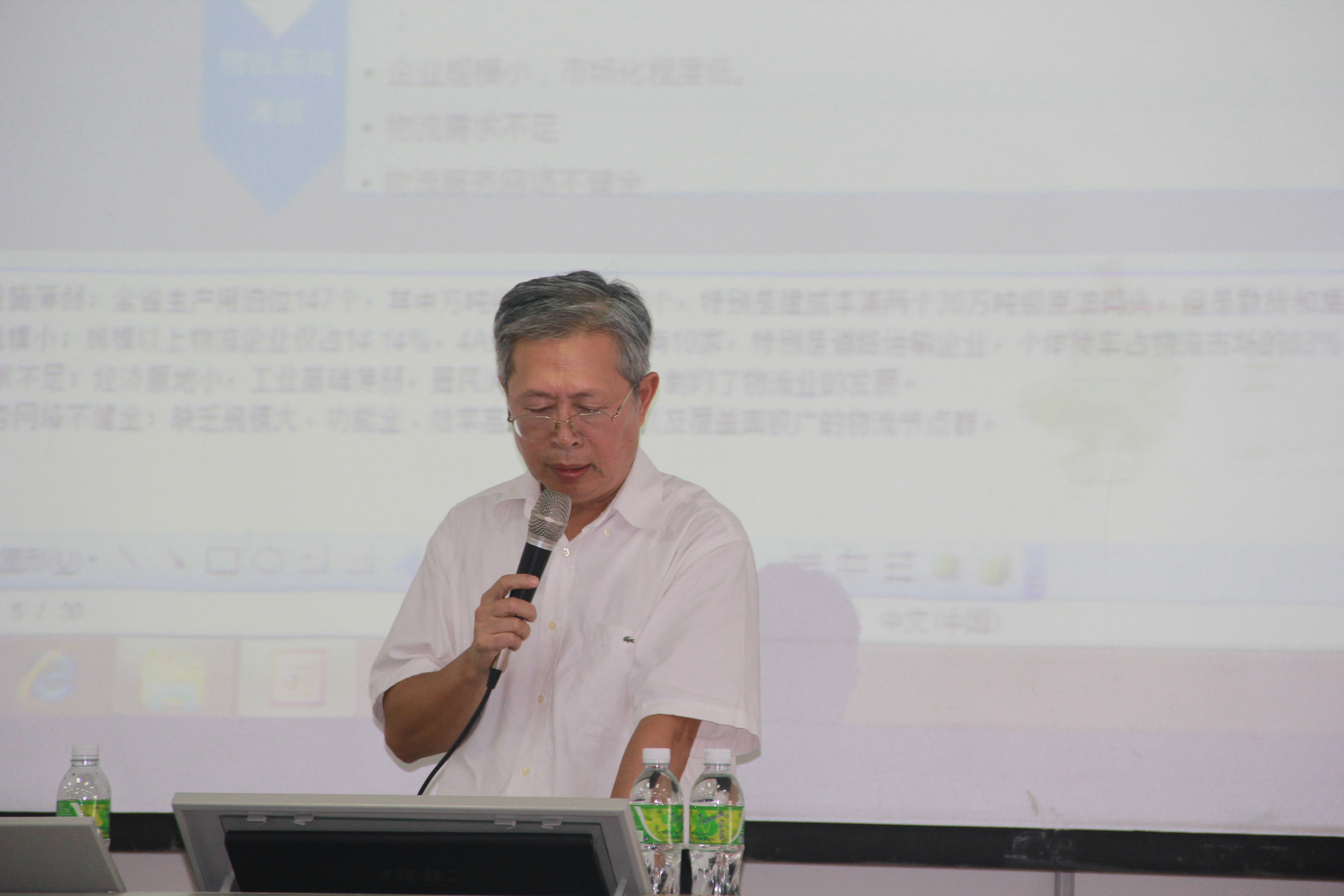 本院11月25日讯(工商管理学院报道)2015年11月24日下午四点,“经贸大讲堂”大学生成长成才系列讲座在1号教学楼421教室正式拉开了帷幕。海南交通物流协会会长、海南经贸职业技术学院客座教授冯学词教授应邀前来我院为物流专业的学生作了专题为《海南现代物流发展机遇与趋势》的讲座。