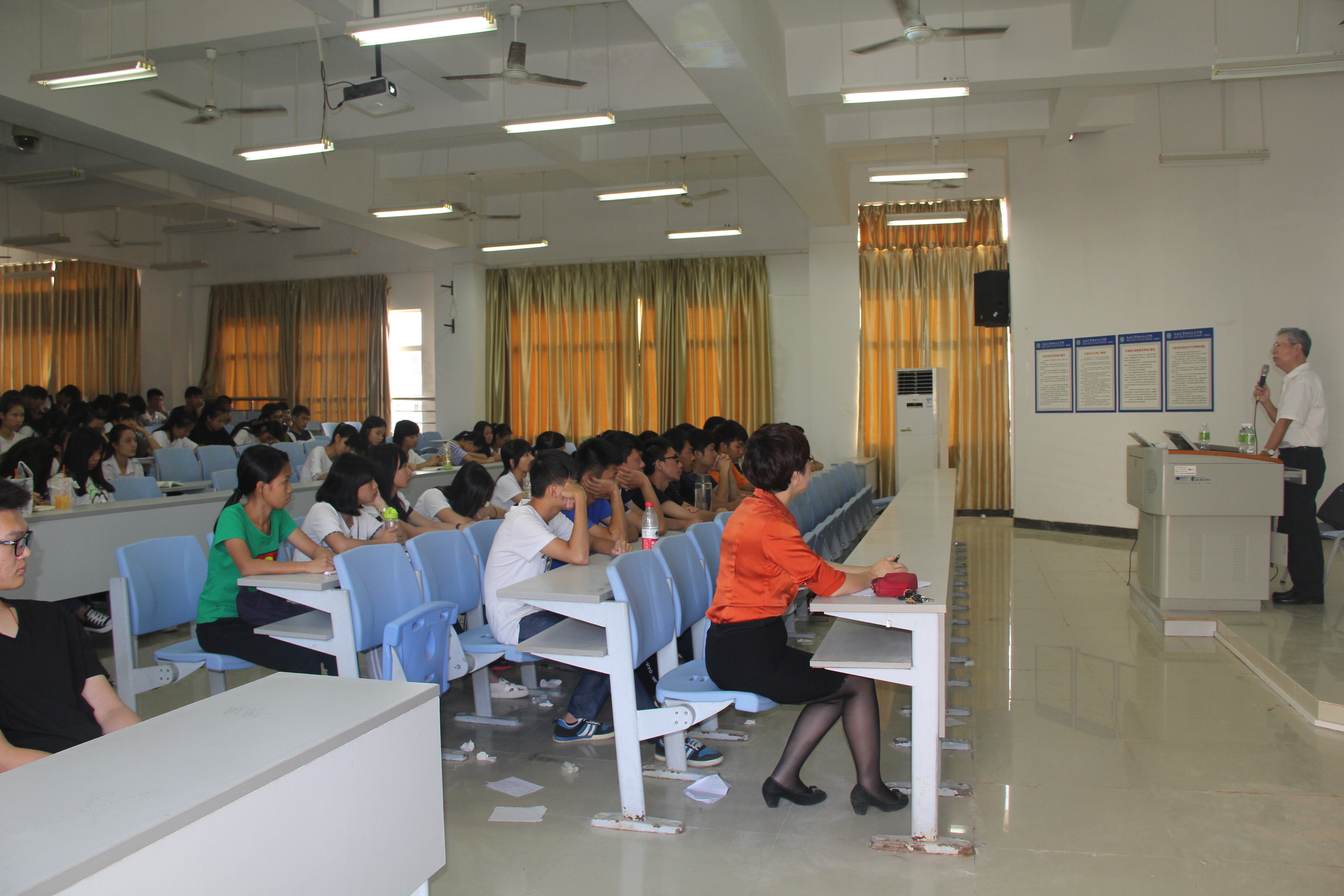 在本次讲座中,冯教授介绍了海南物流发展的机遇和目标设想,讨论了我省物流发展的三大重点问题,提出了十三五期间我省物流发展的重要任务。在2个小时的精彩讲座中,冯学词教授以深入浅出、幽默风趣的授课风格,关注热点、启迪智慧的讲座内容,多次赢得了同学们的热烈掌声。通过此次讲座,同学们对物流行业的现状以及发展方向有了新的认识,对未来的学习目标和就业方向有了更明确的规划。